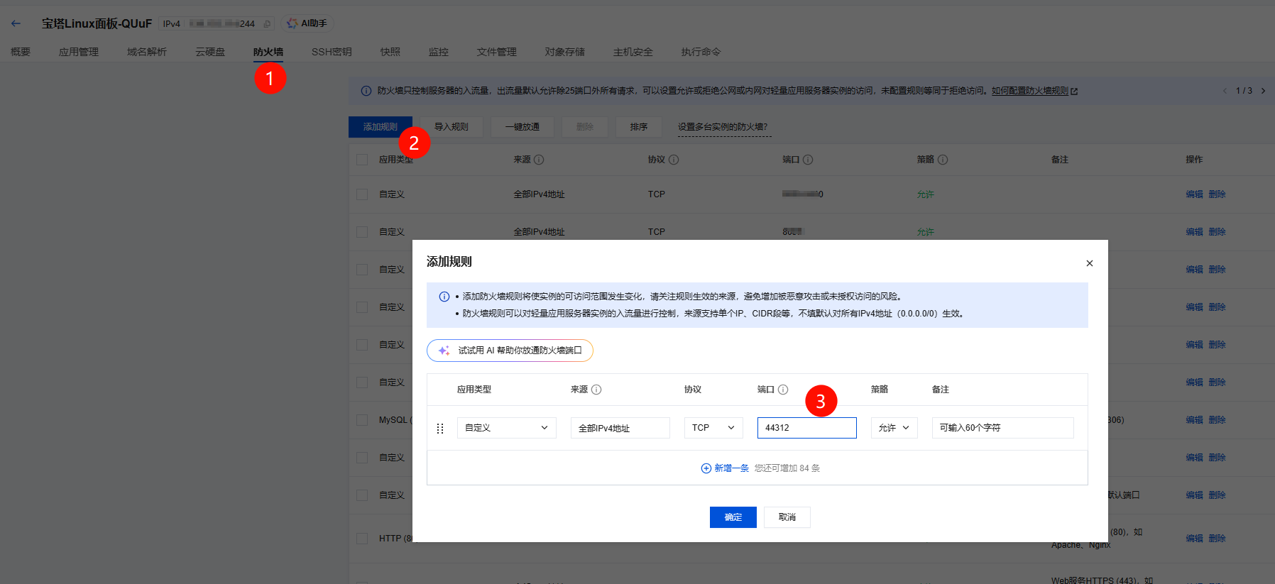 - 当前前端用的44313端口,请在宝塔上和云服务器端开放