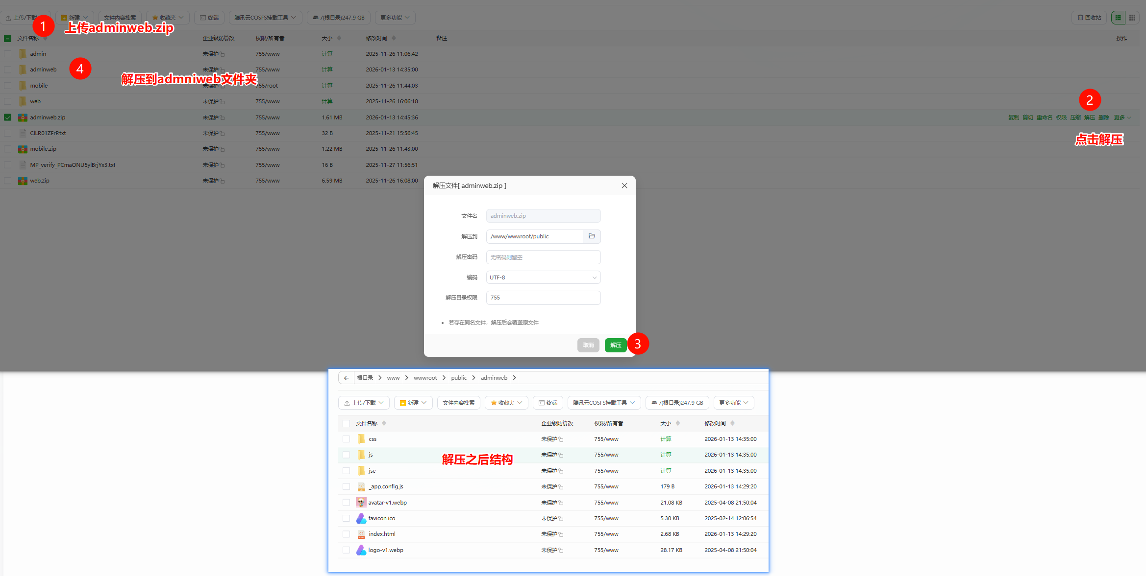 - dist.zip重命名为adminweb.zip