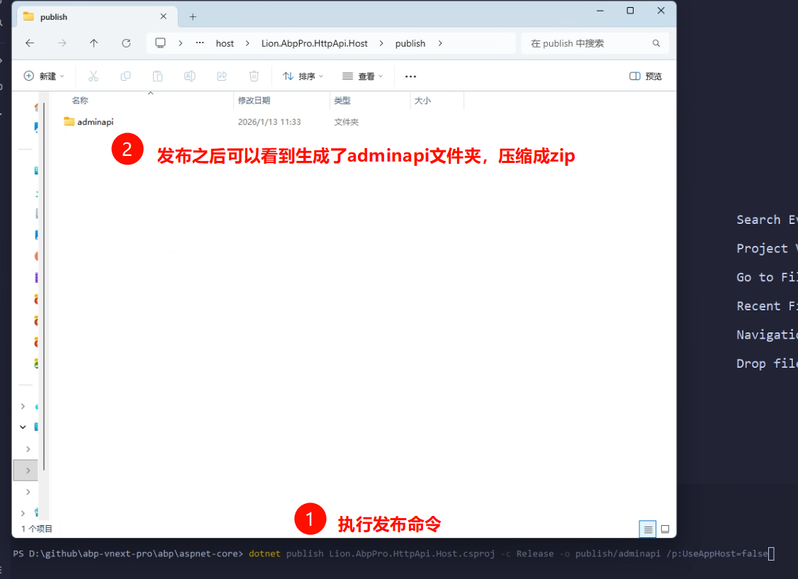 dotnet publish Lion.AbpPro.HttpApi.Host.csproj -c Release -o publish/adminapi /p:UseAppHost=false